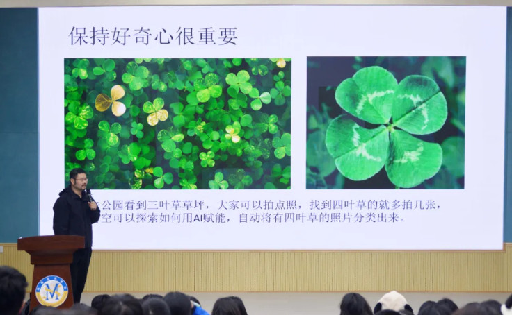 1.保持好奇心。杨叔叔建议同学们在公园看到三叶草时拍照,尤其是四叶草,然后探索如何用AI自动分类这些照片。他分享了身边的一个同学因痴迷研究三叶草而成为火星探究工程师的故事,强调保持好奇心的重要性。