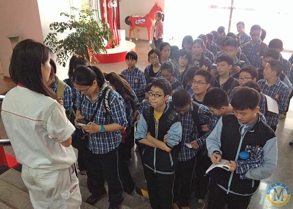 在工作人员的引领和讲解下,同学们参观了可乐瓶、易拉罐的生产线,近距离观察砂糖的储存设备等。在易拉罐的生产过程中,同学们亲眼目睹了竞争的残酷。对于一个没有意识的易拉罐,因为被其它易拉罐挤到,最终就只能被挤出生产线。