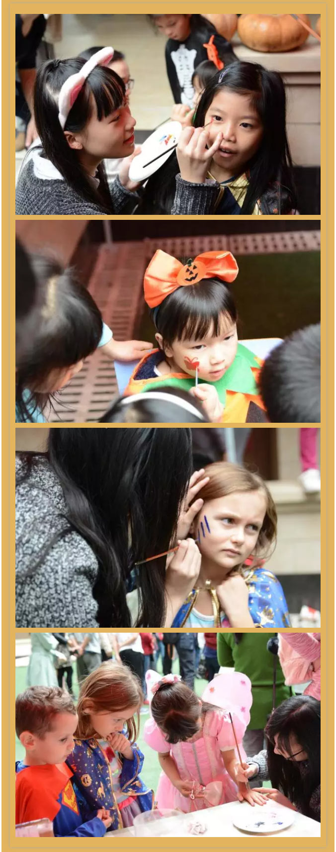 高年级的大哥哥大姐姐们义务帮我们的小学、初中的孩子们装扮自己的脸。孩子们虽小,但是都有着自己的审美标准,向哥哥姐姐们提出自己想要的形象。看着自己装扮以后“吓人”的样子,孩子们开心极了。
