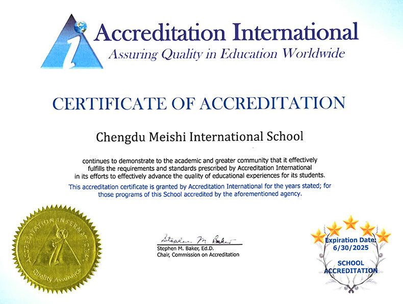 美视学校自2002年建校以来,以“优质教育源于细节”为管理原则,推进全程小班教学,创设浓郁的国际文化氛围,探索中西教育优势互补、融合创新,取得了令人瞩目的办学成绩。今年再次,以考核全优的高水平顺利通过这一严苛认证,AI认证证书,据悉,仅仅是评审文件,就有足足上百页之多。至此,获得IB(国际文凭)授权、NCA(美国北中部院校联盟)、NCPSA(美国私立学校委员会)、Ai(国际认证)等世界先进教育促进组织认证,成为名副其实的世界认可的国际学校。