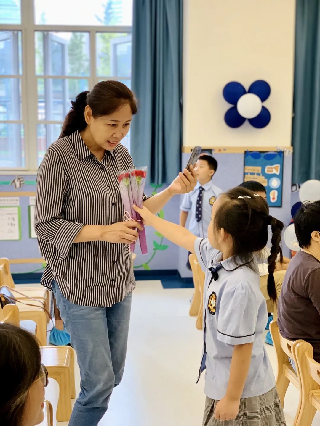 为老师和父母送上鲜花