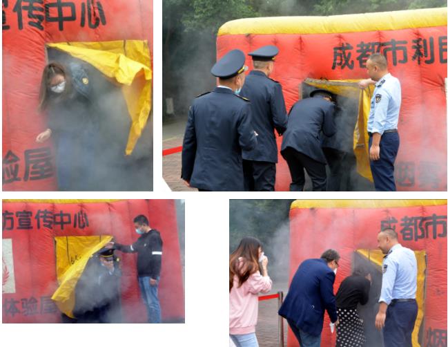最后大家来到操场进行消防模拟逃生通道体验屋疏散演练,“手扶墙、弯腰、低身……”在何教官的带领下,参训人员踊跃参与体验逃生帐篷,在互动体验活动中强化了大家的安全意识,提高了大家对突发安全事件的应变处置能力。