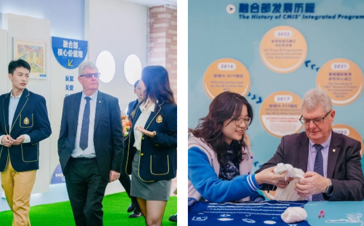 在师生的陪同下,教授漫步于美视的校园,欣赏秋日里静谧又温馨的风景。在这里,教授浏览了一幅幅来自学生们的新颖又独特的作品,对这些作品进行了高度赞扬。