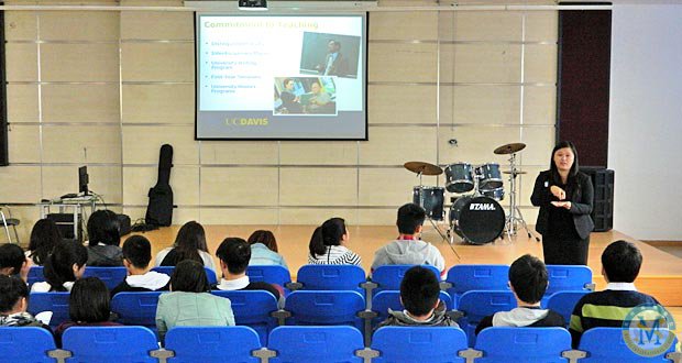 2012年10月24日,美国加州大学戴维斯分校主管中国及香港地区本科招生的招生官李屏姗女士应邀到美视项目部为同学们做了一场关于申请美国加州大学戴维斯分校的招生讲座。