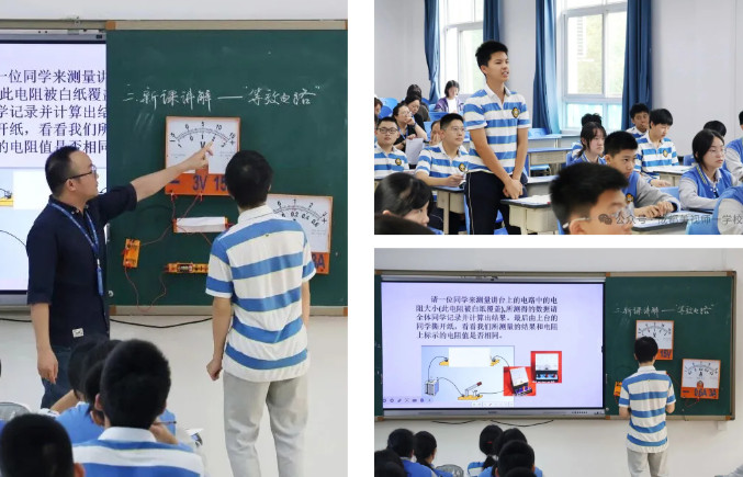 在互动环节,他采取分层策略:基础问题随堂抽问,覆盖全体;难点推导则邀请学生上台板演,教师从旁点拨,精准兼顾了不同层次学生的发展需求。