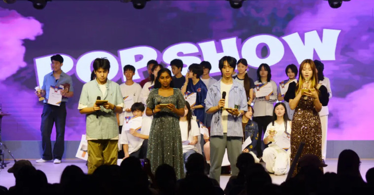 6月6日下午,灿烂的阳光洒在多功能厅的大门上,熠熠生辉,宛如青春的金色勋章。融合部师生齐聚于此,舞台两侧的霓虹灯管随音乐节奏闪烁,仿若一群按捺不住兴奋的小精灵,为这场视听盛宴增添灵动气息。伴随着掌声与欢呼,2025年Pop Show流行音乐秀拉开帷幕。
