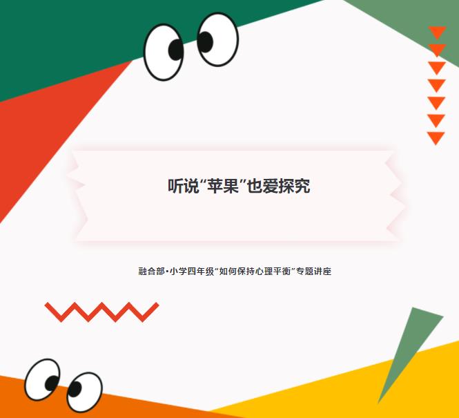 十月金秋,秋风送爽,正是瓜果飘香,五谷丰登的收获季节。融合部·小学四年级的小探究者们也在《我们是谁》的探究主题下收获满满,为了让孩子们更深刻地了解身心平衡的重要性,我们特此邀请“身心灵导师”江春(苹果老师)给孩子带来一场“如何保持心理平衡”的专题讲座,让我们跟着“苹果”去探究吧!