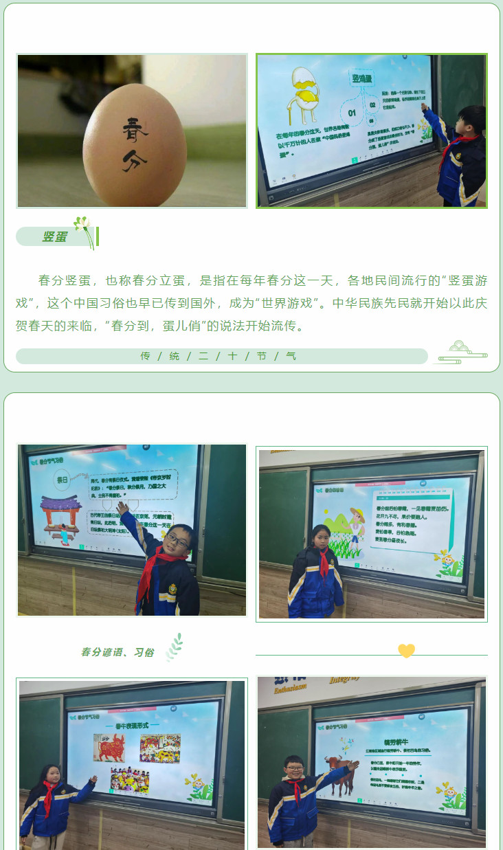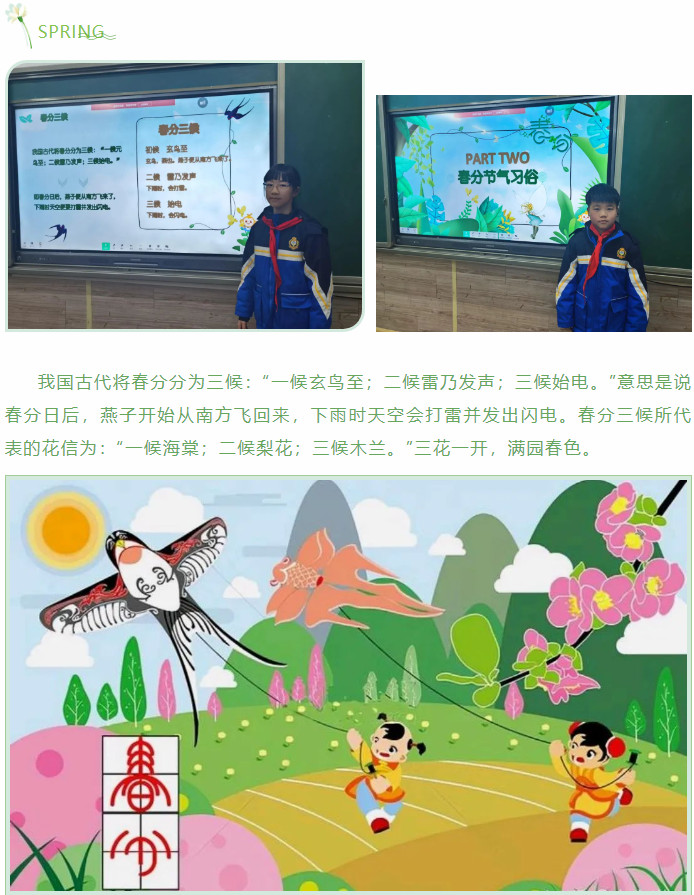春分,是我国传统文化中二十四节气之一,也是一岁中春季的第四个节气,融合部小学四年级二班班的同学们围绕着“春分”这一主题进行了超学科探究。