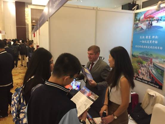 自十月以来,美国最大的语言中心ELS以及多所国外大学陆续到访中美英才班。对于正处在申请大学阶段的同学们来说,这是一次了解国外大学及其招生条件的绝佳机会。到访中美英才班的大学有:波特兰大学、科罗拉多大学波德分校、印第安纳大学、密苏里大学、爱荷华大学、约克大学、塔尔萨大学、加州州立大学东湾分校。此外,10月26日,英才班的同学们参加了2016中国教育展,来自美国、英国、法国、加拿大、新西兰、瑞典、新加坡、马来西亚等国的多所大学亮相本届展会。